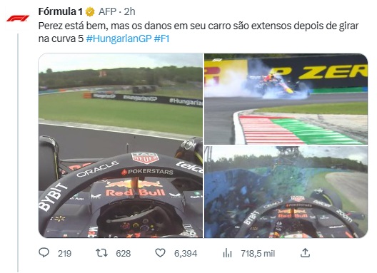 - Red Bull: Perez se viu nas barreiras assim que o fim de semana começou, mergulhando uma roda na grama em sua primeira volta de saída, o que o fez girar para as barreiras. Sua equipe fez bem em consertar seu carro a tempo do TL2. O mexicano travou na segunda sessão, o que lhe custou mais um jogo de pneus. Tudo isso ofuscou bastante Verstappen, que manteve a cabeça baixa e teve um dia estável, embora não espetacular. Isso de pisar na grama e rodar sentimos duas vezes no game oficial da F1, caso você queira ver, o link está abaixo:
