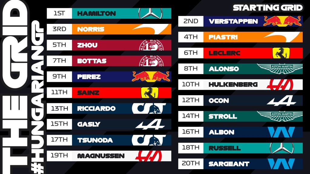 Na volta final do Q3, Hamilton fez o tempo de 1m 16,609s, batendo Verstappen por apenas 0,003s. Lando Norris continuou em boa forma para ficar em terceiro lugar e alinhará na segunda fila ao lado de seu companheiro de equipe na McLaren, Oscar Piastri.