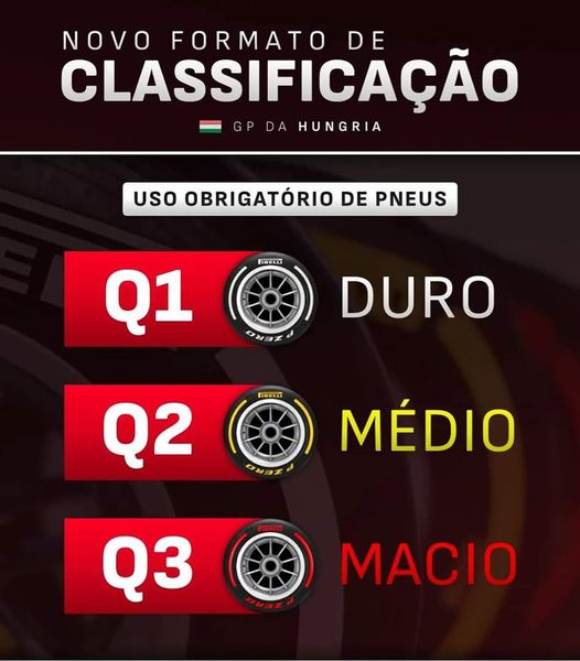- Novo formato de classificação da F1: O que muda? Em vez de equipes e pilotos terem uma escolha livre de pneus na sessão de uma hora de duração de sábado, haverá pneus obrigatórios definidos para cada segmento da classificação (desde que a pista esteja seca para a sessão). No Q1, apenas o pneu duro estará disponível, no Q2, apenas o pneu médio estará disponível e no Q3, apenas o pneu macio estará disponível. Se uma sessão molhada for declarada, os pilotos e as equipes terão liberdade para escolher o pneu. Nesta sexta já choveu, então é possível. O que você acha desse novo formato? Aprovou? Lembrando que é apenas um teste. O GP da Emilia Romagna, em maio, deveria ser o primeiro de dois testes para o novo formato, mas o evento foi cancelado antes que um carro pudesse ir à pista por causa das inundações no norte da Itália. Portanto, o primeiro teste agora acontecerá no GP da Hungria, de 21 a 23 de julho. Também foi confirmado que o segundo teste acontecerá após as férias de verão do esporte no GP da Itália, de 1 a 3 de setembro, em Monza. O objetivo disso é ver se menos pneus podem ser levados para os fins de semana de GP. No teste, o número de conjuntos de pneus secos disponíveis para cada carro no fim de semana é reduzido de 13 para 11. Isso equivale a 40 jogos, ou 160 pneus, economizados ao longo do fim de semana. Se isso fosse implementado em todas as 23 corridas desta temporada, economizaria 3.680 pneus. Não é pouco. Cada piloto terá três jogos de pneus duros, quatro jogos de pneus médios e quatro jogos de pneus macios disponíveis para eles no fim de semana. Isso representa um jogo extra de pneus duros e médios, mas uma redução em quatro jogos de pneus macios.