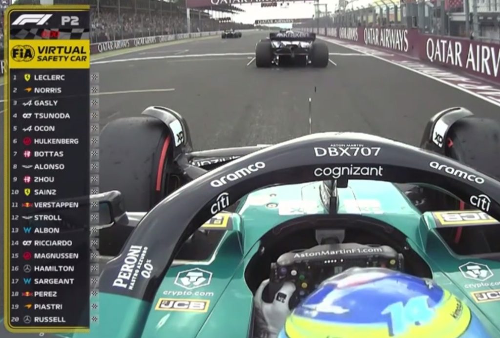 - Fernando Alonso disse: “Fiquei feliz com o AMR23 hoje na qualificação depois de fazer alguns ajustes no acerto de ontem. O tempo médio para alcançarmos a pole position foi de quatro a cinco décimos [de segundo] nesta temporada, então, se você olhar para o nosso resultado hoje, foi uma classificação normal. O pelotão está tão fechado que um décimo aqui ou ali faz uma grande diferença na decisão das posições finais. Acho que nosso desempenho é melhor do que nosso resultado sugere. Olhando para a corrida, sabemos que é difícil ultrapassar aqui, então acho que será difícil amanhã. Vamos tentar extrair o máximo e mirar nas seis primeiras posições para marcar o máximo de pontos possível.”