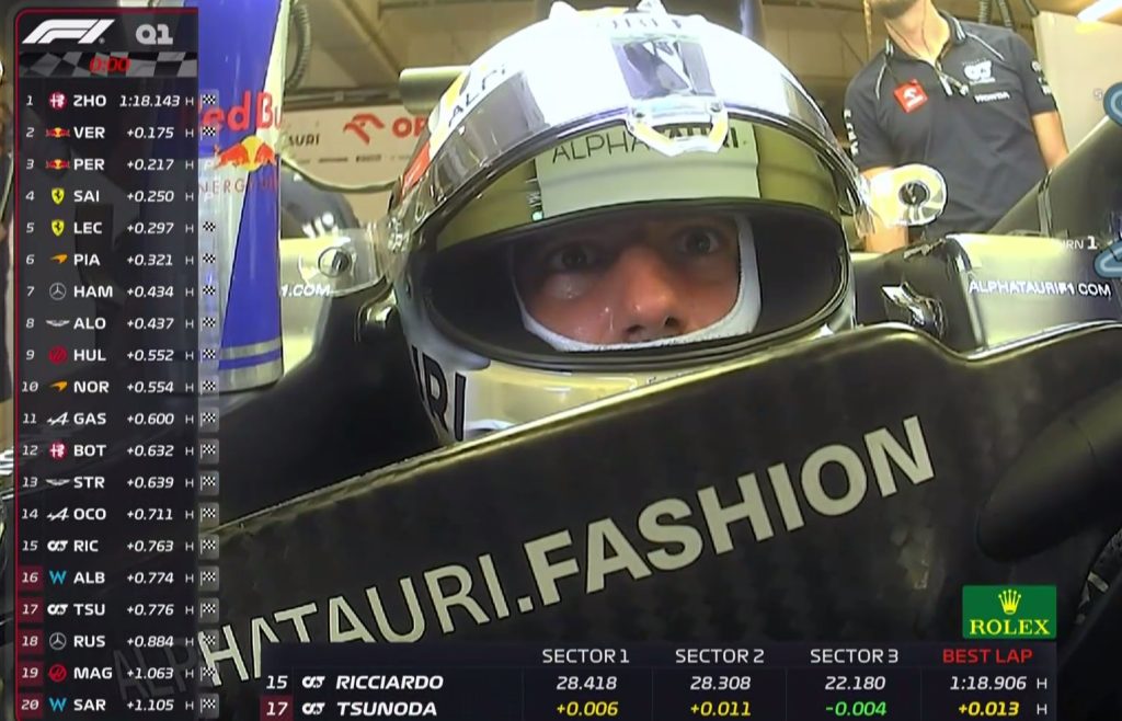 - Yuki Tsunoda disse: “Hoje foi difícil. Ser eliminado do Q1 não é bom; é difícil e estou desapontado. Não consegui melhorar e perdi o Q2, não terminando na posição que queria, o que é uma pena. O ritmo estava lá e sinto que demos um passo à frente com a nova asa traseira, simplesmente não consegui montá-la e maximizar meu desempenho. É um bom aprendizado para o futuro, mas estou muito frustrado por ter perdido a oportunidade de maximizar meu ritmo. A diferente alocação de pneus que tivemos para a classificação esta semana foi divertida, mas desafiadora, porque tornou os treinos mais difíceis, mas não afeta a corrida de amanhã. Pelo que vimos nos treinos, o ritmo de corrida parece bom, então espero poder maximizar isso e ganhar o máximo de posições possível.
