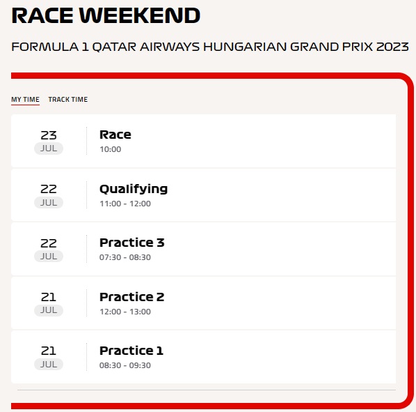 - AlphaTauri. Ricciardo parecia que nunca tinha saído no TL1, discussões sensatas com seu engenheiro pelo rádio mostrando que ele estava tudo sobre o negócio na pista. Ele manteve seu carro apontando para o caminho certo no TL1, que foi um pouco mais do que seu companheiro de equipe conseguiu – Tsunoda danificou sua asa dianteira em um giro tardio. Mas no TL2, o piloto japonês mostrou sua experiência ao colocar seu carro entre os cinco primeiros com uma volta cintilante, que Ricciardo não conseguiu igualar. Daniel Ricciardo disse: “Acho que a posição não é muito relevante no momento. Hoje foi mais sobre sentir onde estou com o carro. Obviamente, há muita atenção externa, mas assim que coloquei o capacete e entrei no carro, parecia familiar, como se eu nunca tivesse saído. Obviamente, esta manhã não conseguimos nada, exceto uma volta no seco, mas esta tarde, o carro parecia bem e não muito ruim. Me senti confortável rapidamente e comecei a sentir o limite do carro. Amanhã vou tirar um pouco mais de mim, e com certeza há algumas coisas no carro que podemos melhorar. Vamos trabalhar um pouco esta noite, mas nada de louco. No momento, estou otimista. Yuki teve um bom dia, então se juntarmos tudo amanhã, podemos fazer tudo bem.” Yuki Tsunoda disse: “Tenho certeza de que outras equipes não mostraram todo o seu potencial, então é difícil saber nossa posição em comparação com o resto do campo, mas até agora, estou feliz como as sessões foram hoje. A Hungria é dura com pneus, especialmente com o composto de pneus macios C5 que estamos usando neste fim de semana, mas isso nos permitiu coletar mais dados sobre o carro, onde me senti confiante com o equilíbrio consistente ao longo das longas corridas. Tentamos o composto médio, mas como a pista estava mais fria do que esperávamos no domingo, sentimos que não é representativa. No geral, o passo que senti indo do composto médio para o macio foi grande e positivo em comparação com a temporada até agora.” Jonathan Eddolls, engenheiro-chefe de corrida: “Tem sido ótimo receber Daniel de volta à equipe, e todos nós estamos animados para começar a trabalhar com ele na pista. Tínhamos um bom plano para maximizar a corrida com ele hoje, deixá-lo confortável com o carro e obter seu feedback sobre as características de manuseio, mas as condições no TL1 dificultaram isso. Conseguimos juntar alguns setores antes da chuva chegar, mas não conseguimos completar uma volta cronometrada. A intensidade da chuva aumentou e, eventualmente, as condições foram molhadas o suficiente para o composto intermediário, onde lutamos com a aderência geral e para aquecer os pneus. O TL2 estava totalmente seco, então conseguimos recuperar os planos, com ambos os pilotos completando corridas curtas com o pneu médio e macio, antes das habituais corridas longas para a preparação da corrida. A volta de Yuki no composto macio foi limpa e parecia muito competitiva, mas com o fim de semana modificado para a qualificação, o foco será otimizar o desempenho duro e depois médio de curto prazo na preparação para o Q1 e Q2, respectivamente. Daniel acelerou rapidamente com o pneu médio e utilizou um pouco a aderência no composto macio, então definitivamente há mais por vir. Ficamos impressionados com seu desempenho e feedback até agora, e ele se encaixou diretamente na equipe como nunca saiu. As atualizações que trouxemos estão funcionando, e estamos ansiosos para ver o que podemos alcançar no quali amanhã.”