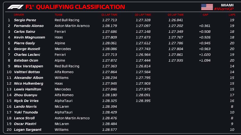 - Verstappen ‘um pouco chateado comigo mesmo’ após o erro de qualificação em Miami, mas a vitória vinda do P9 ‘não é impossível’. Max Verstappen estabeleceu como meta mínima recuperar os lugares do pódio durante o Grande Prêmio de Miami na tarde de domingo, depois de terminar uma dramática sessão de qualificação na nona posição. Ele deixou para o final a sua volta derradeira, porém esse final não veio com a bandeira vermelha causada por Leclerc.