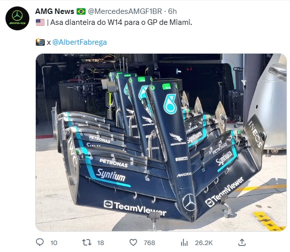 - ‘É um chute no estômago’ – Hamilton ficou frustrado quando a Mercedes caiu nas tabelas de tempos dos treinos de sexta-feira em Miami. Lewis Hamilton admitiu que a queda da Mercedes do topo da classificação para o meio-campo no primeiro dia de treinos para o Grande Prêmio de Miami foi “difícil de aceitar”, descrevendo sua tarde ao volante como “uma luta”. Hamilton ficou em P7 e Russel em P15, quando no P1 ambos dividiram as duas primeiras posições. Em Baku ele já havia descrito o Safety Car do início da corrida que atrapalhou seus esforços como um “chute na boca”, e agora Lewis usou uma analogia semelhante ao avaliar o desempenho da Mercedes até agora neste fim de semana. “O FP1 parecia muito bom, e então entramos no FP2, e o verdadeiro ritmo apareceu,” disse ele. Hamilton apontou o superaquecimento dos pneus como uma questão-chave, dizendo que foi “muito mais agradável de dirigir lá em Baku”.