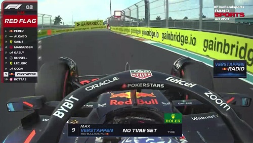 Perez faz seu tempo para P1 no início do Q3, e Max Verstappen deixou o seu para final, porém não teve essa oportunidade. Charles Leclerc causou uma bandeira vermelha que encerrou o treino e assim teremos o grid com Perez em P1, Alonso em P2 e Sainz em P3, com Leclerc em P7 e com Max em P9. E em uma pista de pouca aderência e muro perto, amanhã tudo pode acontecer. Até lá.