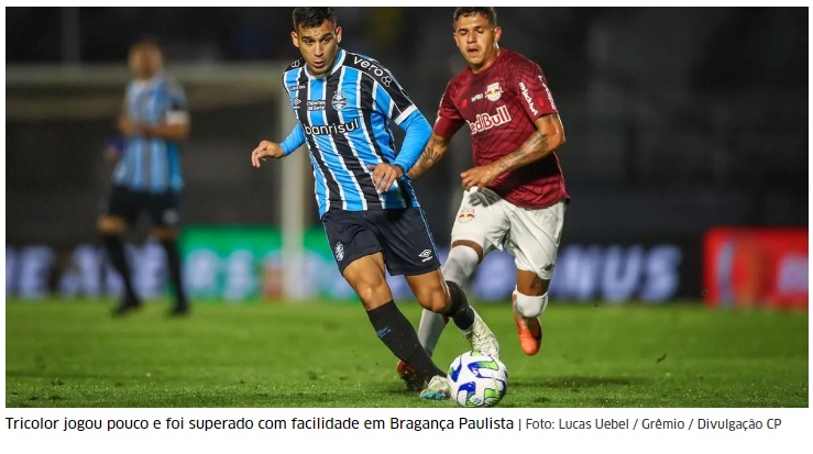 A atuação sofrível, o Tricolor “não apareceu para jogar” e foi superado com facilidade pelo Red Bull Bragantino por 2 a 0 na noite desta quinta-feira no estádio Nabi Abi Chedid pela 23ª rodada. O domínio do Bragantino foi durante todo o jogo. Mas claro que os detalhes também tem importância. No futebol não se vive de SEs, mas se o Grêmio tivesse feito os gols que perdeu, poderia ter sido bem diferente. Mas não foi e não tira o mérito do Bragantino que foi muito superior.