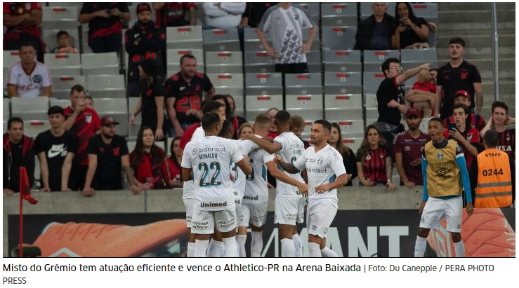 Pensando justamente na partida do meio da semana pela Copa do Brasil, Renato promoveu alterações na Arena da Baixada em todos os setores em relação ao time que venceu o Gre-Nal. Uma das mudanças mais comentadas certamente, foi o retorno de Adriel ao gol, ele qque havia sido afastado por questões disciplinares. E ele sabe que não podia errar, e não errou. Fez uma excelente partida. Os gols gremistas foram marcados por Cuiabano e Bruno Uvini, enquanto Vitor Roque fez o tento dos paranaenses na Arena da Baixada. O grêmio começou desatento e tomando susto, mas logo inseriu qualidade em seu jogo.