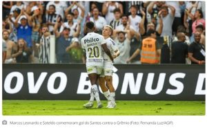 Tricolor sai na frente, mas Peixe consegue vitória com grande atuação de Soteldo Ou veja em vídeo: ATUALIZAÇÕS PÓS JOGO: RESENHA DO JOGO: O Grêmio, que briga pelo G-4, abriu o placar com Cristaldo logo no início do segundo tempo, mas o Peixe conseguiu a virada com gols dos centroavantes Marcos Leonardo e Julio Furch, … Continue lendo BRASILEIRO: Grêmio toma virada do Santos com Vila lotada