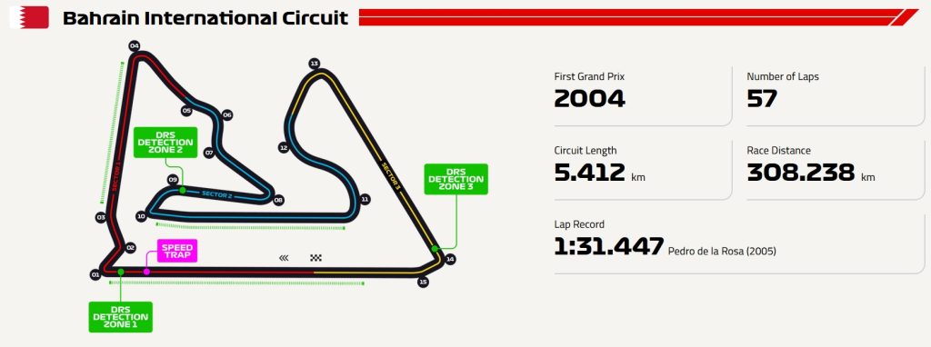 O terreno foi quebrado para o Circuito Internacional do Bahrein em dezembro de 2002. Para o Circuito Yas Marina em Abu Dhabi, os desenvolvedores tinham uma tela em branco e arenosa para trabalhar e, com isso, formaram a pista técnica de 5,4 km projetada por Hermann Tilke. Foi em 2004 quando os pilotos fizeram a primeira fila sob um céu nublado incomum para o primeiro Grande Prêmio do Bahrein. A corrida foi dominada (como muitas em 2004) pelas duas Ferraris, com Michael Schumacher vencendo Rubens Barrichello, enquanto as multidões também foram tratadas com uma fantástica luta de cães entre a Jaguar de Mark Webber e a Renault de Fernando Alonso. Geralmente, você pode esperar grandes corridas e quantidades decentes de ultrapassagens no Bahrein, enquanto os pilotos têm que lidar com o vento, correr sob holofotes e a dificuldade de encontrar uma configuração decente com as amplas flutuações de temperatura entre as sessões. O ponto mais desafiador da pista é a lateral-esquerdo da curva 10, de baixa, enquanto a corrida rápida pela curva 12 é outro destaque, permitindo que os pilotos realmente sintam seus carros ganhando vida.