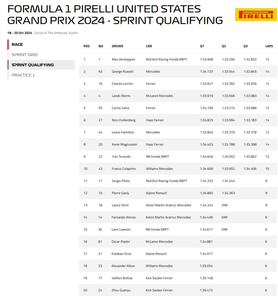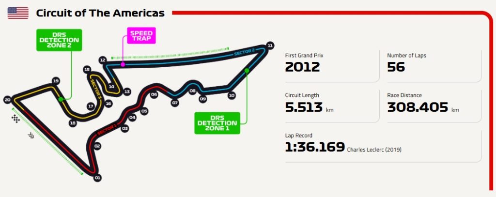 - Que pneus as equipes e pilotos terão para o Grande Prêmio dos Estados Unidos de 2024? Os fornecedores oficiais de pneus da F1 fornecerão os três compostos no meio de sua gama – o C2 como o duro, o C3 como o médio e o C4 como o macio – no local de Austin, que agora foi quase totalmente recapeado em um projeto que começou há dois anos. Como é um fim de semana de Sprint, a alocação de pneus cai de 13 para 12, com os pilotos recebendo dois conjuntos de duros (marcados em branco), quatro dos médios (marcados em amarelo) e seis dos macios (marcados em vermelho). O número de séries de tempo úmido permanece o mesmo (cinco intermediários e dois úmidos).