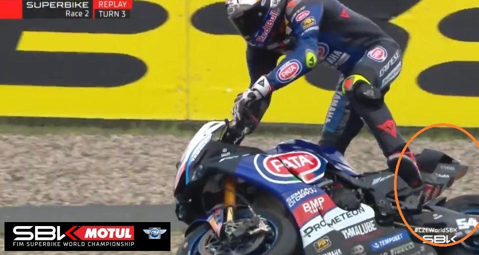 - Hoje é dia de falar de MotoGP, afinal final de semana tem GP em Silverstone. Mas antes, esse assunto é importante destacar aqui. Que pecado o que aconteceu com o Toprak na prova em Most na Corrida2. Certamente a melhor e mais emocionante corrida do ano, transmitida pelo nosso canal, SE VOCÊ PERDEU OUÇA NOVAMENTE A NARRAÇÃO AQUI. E falamos pecado não porque torcemos por ele, quem acompanha o canal a mais tempo sabe que torcemos pelo campeonato e a queda do turco foi horrível para esse quesito. E no vídeo que temos em anexo E QUE VOCÊ PODE VER AQUI, da para ver bem o pneu dele furado enquanto ele cai. Que fase. A segunda imagem que mais rodou na internet mostra o pneu já fora da roda, enquanto no vídeo nota-se ele murcho (já furado). Incrível e trágico ao mesmo tempo. Toprak liderava a corrida que já caminhava para o seu final, com Álvaro Bautista tendo chances de lutar pela vitória, pois estava colado. Iria passar? Infelizmente nunca saberemos, mas ficaremos felizes se você comentar aqui para sabermos a sua opinião. Após a corrida, a Pirelli revelou que a causa do acidente foram as bolhas no pneu traseiro de Razgatlioglu.