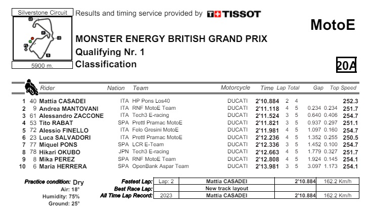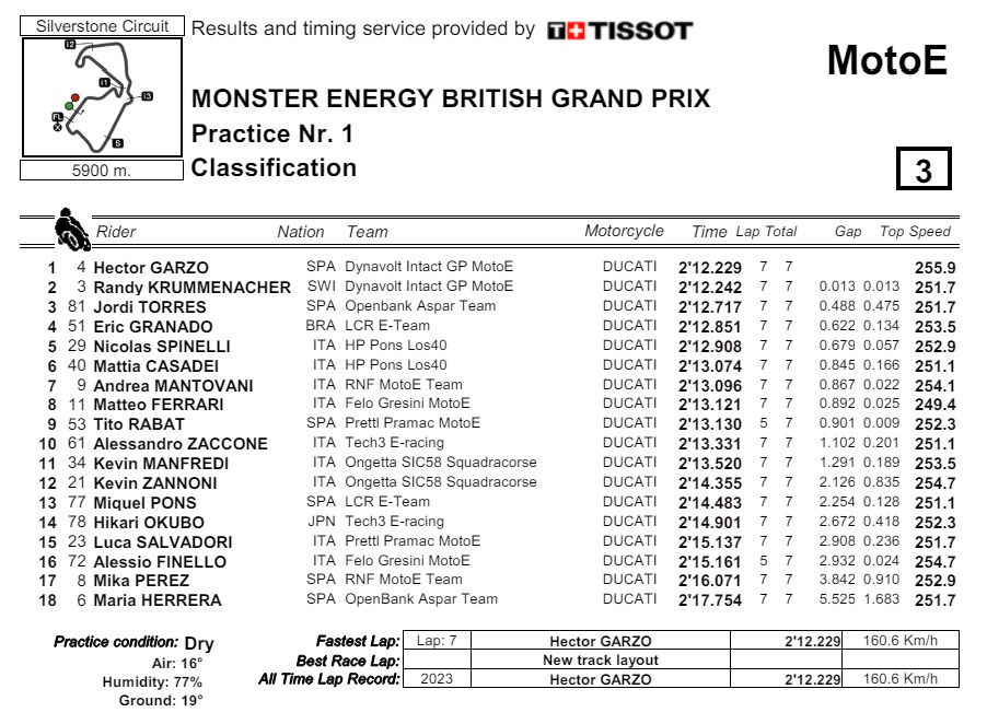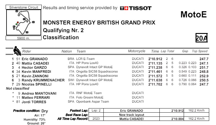 2 – RESULTADO, RESENHA E LINK DA TRANSMISSÃO AO VIVO das Corridas MotoE, Qualificações e Treinos Livres (em 05/8/2023 a partir das 04:40)