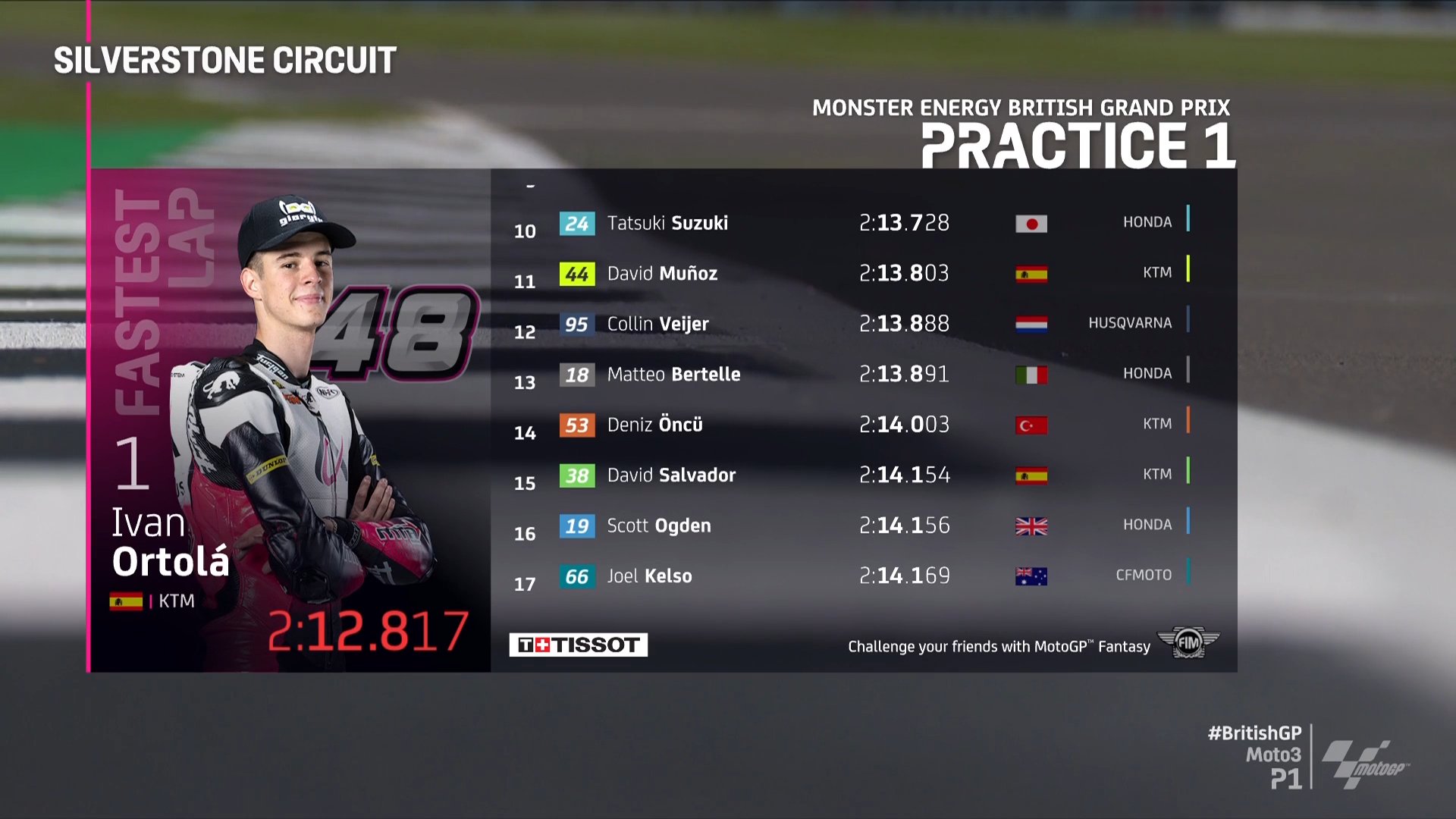 Jaume Masia, após as quedas do treino 3, segurou o ímpeto e fez a pole para o GP de Silverstone, com Scott Ogden em P2 e o líder do campeonato em P3. Diogo Moreira larga em P16