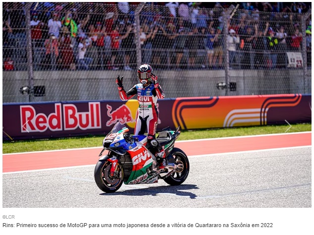 E temos um dado interessante para lembrar: Rins, estreante na LCR Honda, já venceu metade das últimas seis corridas de MotoGP, duas delas com a Suzuki. Ele venceu também no Texas pela segunda vez depois de 2019, quando pegou o grande Valentino Rossi por 0,462 segundos.