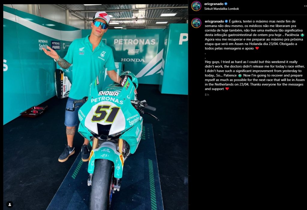Antes da corrida, Remy Gardner (GYTR GRT Yamaha WorldSBK Team) e o brasileiro Eric Granado (PETRONAS MIE Racing HONDA Team) foram declarados inaptos para a ação de sábado devido a um problema estomacal.