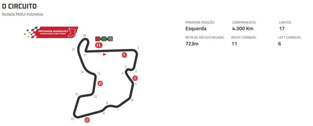 Pertamina Mandalika International Street Circuit, Indonésia – Situado na ilha indonésia de Lombok, o circuito de Mandalika sediou sua primeira corrida de SBK em 2021 com uma incrível decisão do título entre Toprak Razgatlioglu e Jonathan Rea, e também decidiu o resultado do campeonato de 2022. Lombok e o resort Mandalika oferecem um cenário deslumbrante ao redor do circuito, com costas incríveis de um lado e belas encostas e paisagem campestre do outro, é um local deslumbrante para corridas emocionantes no WorldSBK.