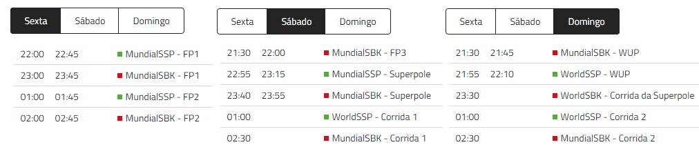 Horários completos da próxima corrida: