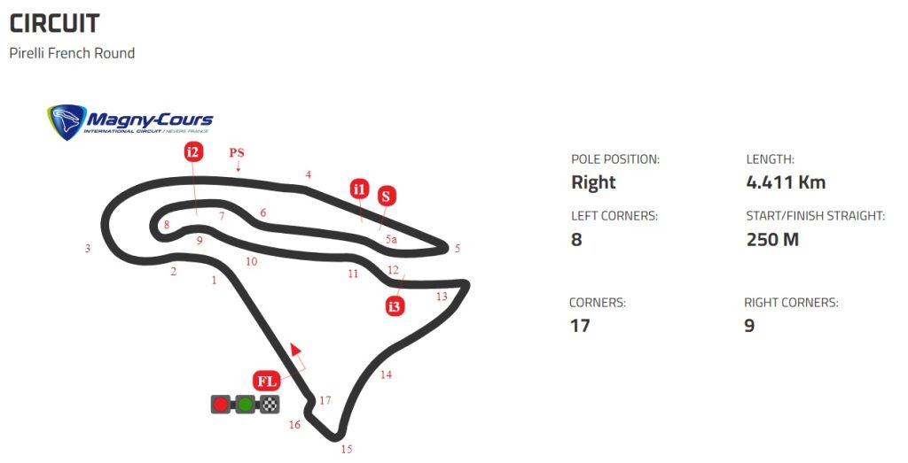O circuito de Magny-Cours apareceu pela primeira vez no calendário do WorldSBK por um único ano em 1991, mas desde 2003 tem sido uma presença regular, já que a série faz a viagem a cada temporada para o local com capacidade para 90.000 pessoas perto das cidades de Magny-Cours e Nevers, 250 km ao sul de Paris. O campeonato também visitou brevemente Paul Ricard e Le Mans, enquanto pilotos como Regis Laconi, Sebastien Gimbert e Raymond Roche representaram a França nas SBK, com o último conquistando o título de 1990.