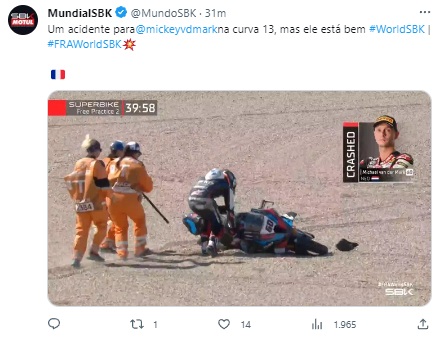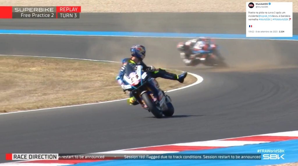- Rinaldi, que foi anunciado recentemente que deixará a Ducati de fábrica do Superbike para 2024, foi P1 no treino da tarde e P2 no geral. O que ele acha que pode conseguir no final de semana? “Foi uma boa sexta-feira para nós, pois pudemos testar algo que tentámos durante o teste. Está muito quente para Magny-Cours, então é como uma faixa diferente. Pude testar pneus diferentes e forçar muito para estar no topo à tarde. Temos que trabalhar para melhorar porque os três primeiros estarão sempre presentes na corrida. No momento não somos os favoritos, mas podemos estar felizes com este primeiro dia positivo. É difícil dizer quem será o favorito, mas verifiquei os tempos por volta muito rapidamente; Acho que Toprak e Jonny têm o melhor ritmo neste momento, mas sabemos que o Álvaro no sábado à tarde e no domingo estará sempre lá. Tentámos uma afinação diferente para melhorar na zona de frenagem e esta manhã não estava a 100%, mas à tarde melhoramos, por isso consegui ser rápido. Ainda tive que colocar muita energia para pilotar este tipo de moto, por isso ainda estamos tentando encontrar a melhor solução para sermos suaves e rápidos da mesma maneira. Escolhemos os pneus depois do TL2, mas ainda não vou contar! Farei o meu melhor para tentar subir ao pódio e veremos o que podemos fazer para tentar melhorar o nosso ritmo de corrida.” Vamos aguardar e ver se ele poderá fazer algo de positivo neste final de semana para mostrar serviço. Nesta semana ele disse que tem 99,9% de certeza de que estará no grid em 2024. Mas e aquele 1%?
