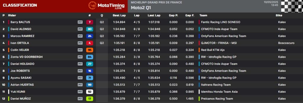 Baltus, Alonso, Ramirez e Ortola são os 4 qualificados para o Q2 da Moto2.