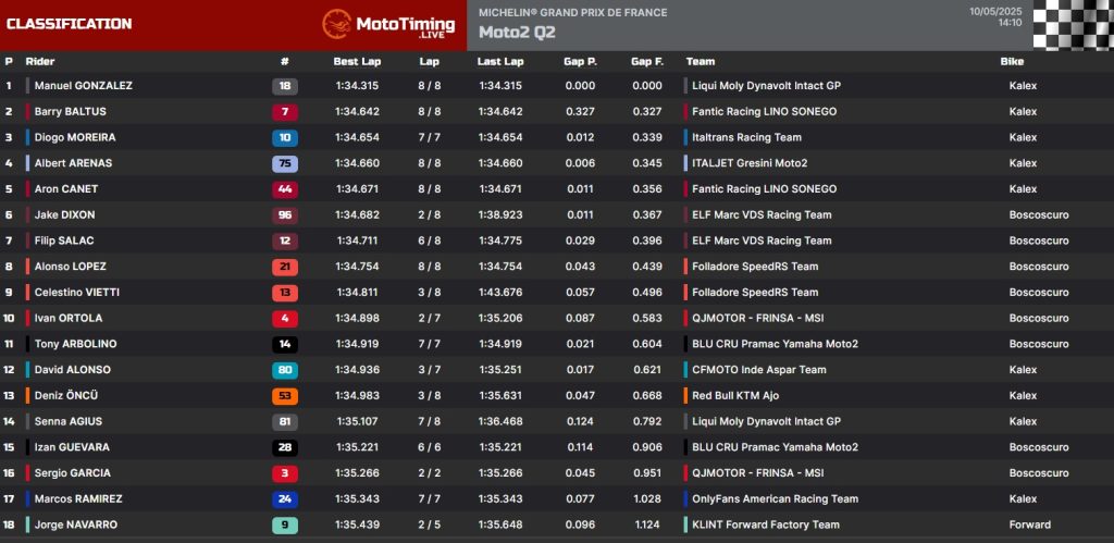 E deu o brasileiro Diogo Moreira na primeira fila para o GP de Leman da Moto2. Fantástico. O brasileiro demorou para vir a pista, mas nem precisou vir antes, na tentativa derradeira ele garantiu a vaga na primeira fila, apesar da ameaça que veio depois com Aron Canet, porém o espanhol ficou em P5, não indo tão bem no setor final. Manuel Gonzalez faz a pole com recorde de volta de todos os tempos, com Barry Baltus em P2.