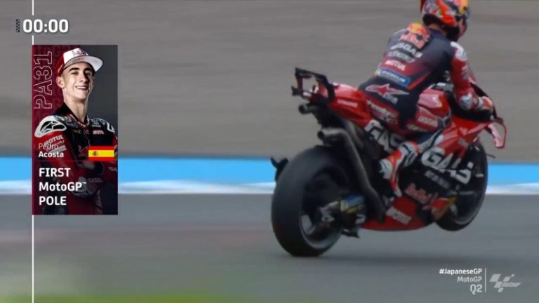 Ja no final do treino, Jorge Martin sofre uma queda e abandona suas chances de largar bem na Sprint e Corrida do Japão, e virá da P11. Marc Marquez fez uma volta voadora e imbatível para a pole, porém foi cancelada, devido a limites de pista só perceptíveis pela câmera lenta. Com isso, temo Pedro … Continue lendo MotoGP: Pedro Acosta conquista sua primeira pole position