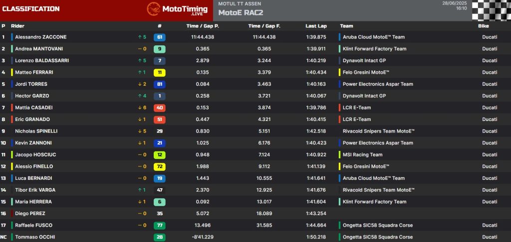 Resultado MotoE Corrida 2