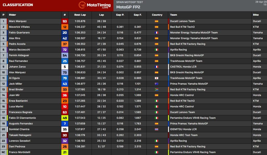 E embora nenhum piloto da RC16 tenha subido ao pódio no GP de Jerez de la Frontera, a KTM mostrou um desempenho de equipe muito convincente com Vinales em 4º lugar, Binder e Acosta em 6º e 7º, mais Bastianini em 9º lugar. Embora não seja decisivo nas fases iniciais da temporada, o fato de a KTM ter melhorado para o 3º lugar na classificação dos fabricantes com o resultado mais do que sólido da equipe também compensou os austríacos pela derrota por pontos no deserto do Qatar.