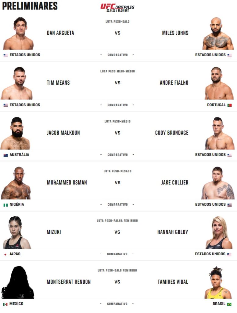 CARD PRELIMINAR – Dia 23/09/2023 às 17:00 horas (horário de Brasília)