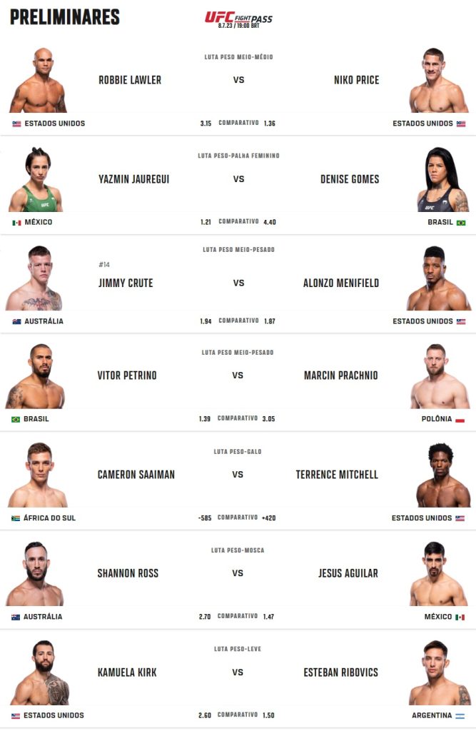 CARD PRELIMINAR – Dia 08/07/2023 às 19:00 horas (horário de Brasília)