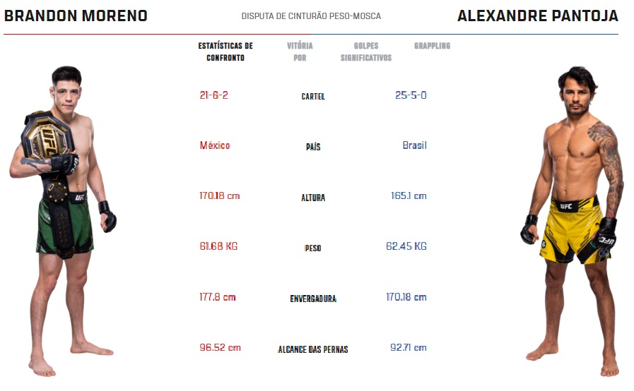 Luta 4: Brandon Moreno x Alexandre Pantoja – Peso Mosca – 09/07/2023 – início aproximado no horário de Brasília às 01:00