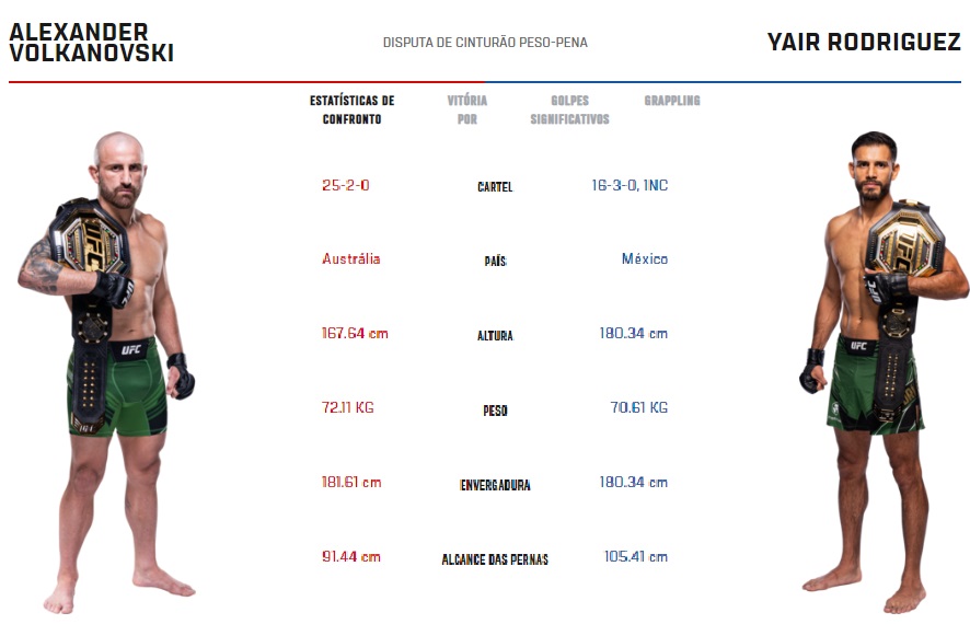 Luta 5: Alexander Volkanovski x Yair Rodriguez – Peso Pena – 09/07/2023 – início aproximado no horário de Brasília às 01:40