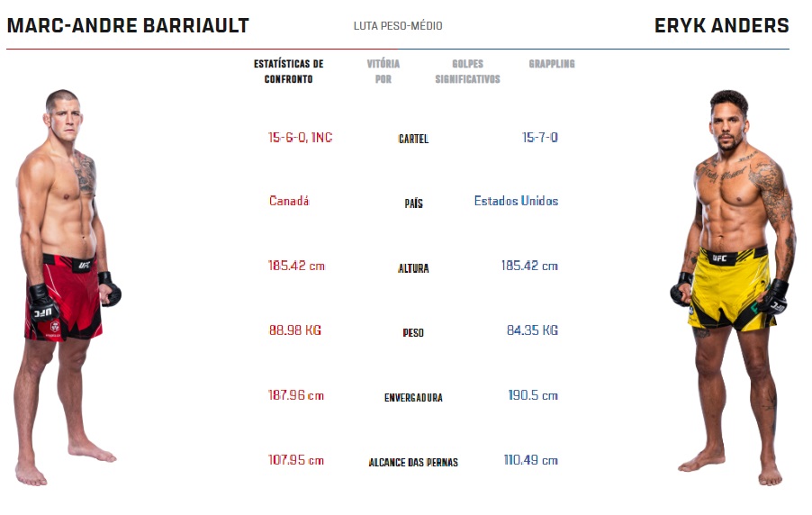 Luta 1: MARC-ANDRE BARRIAULT x ERYK ANDERS – PESO-MEDIO – 10/06/2023 – início aproximado no horário de Brasília às 23:00.