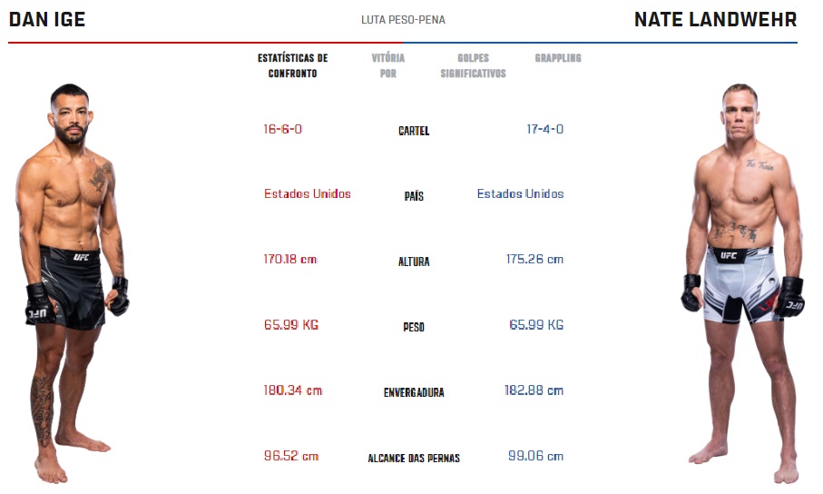 Luta 2: DAN IGE x NATE LANDWEHR – PESO-PENA – 10/06/2023 – início aproximado no horário de Brasília às 23:40.