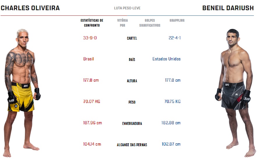 Luta 4: CHARLES OLIVEIRA x BENEIL DARIUSH – PESO -LEVE – 11/06/2023 – início aproximado no horário de Brasília às 01:00.