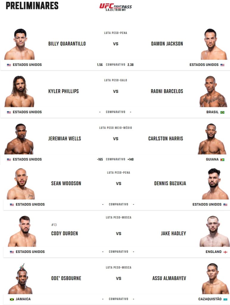 CARD PRELIMINAR – Dia 05/08/2023 às 19:00 horas (horário de Brasília)
