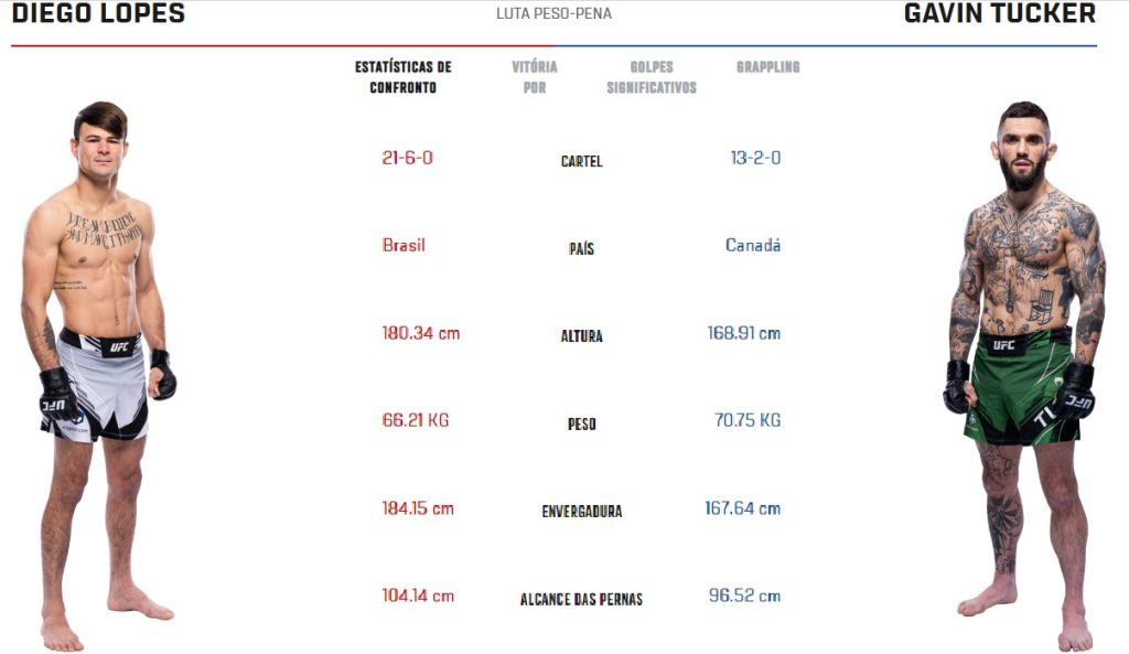 Peso-pena (até 65,7 Kg): Diego Lopes (66 Kg) x Gavin Tucker (65,7 Kg)