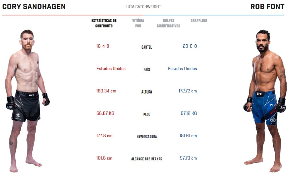 Peso casado (até 63,5 Kg): Cory Sandhagen (63,2 Kg) x Rob Font (63 Kg)
