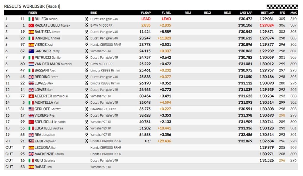 Toprak Razgatlioglu: deu seu melhor, a moto evoluiu, ele tentará vencer. Disse que cometeu um erro quando foi ultrapassado pelo Bulega. Mas está feliz pela evolução da moto, apesar da Ducati do Bulega estar melhor. Mas deixou claro que está competitivo. Quando perdeu o slepstream para Bulega não conseguiu mais.