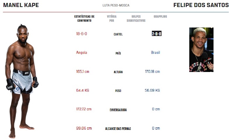 Luta 4: Manel Kape x Felipe dos Santos – Peso Mosca – 10/09/2023 – início aproximado no horário de Brasília às 00:20