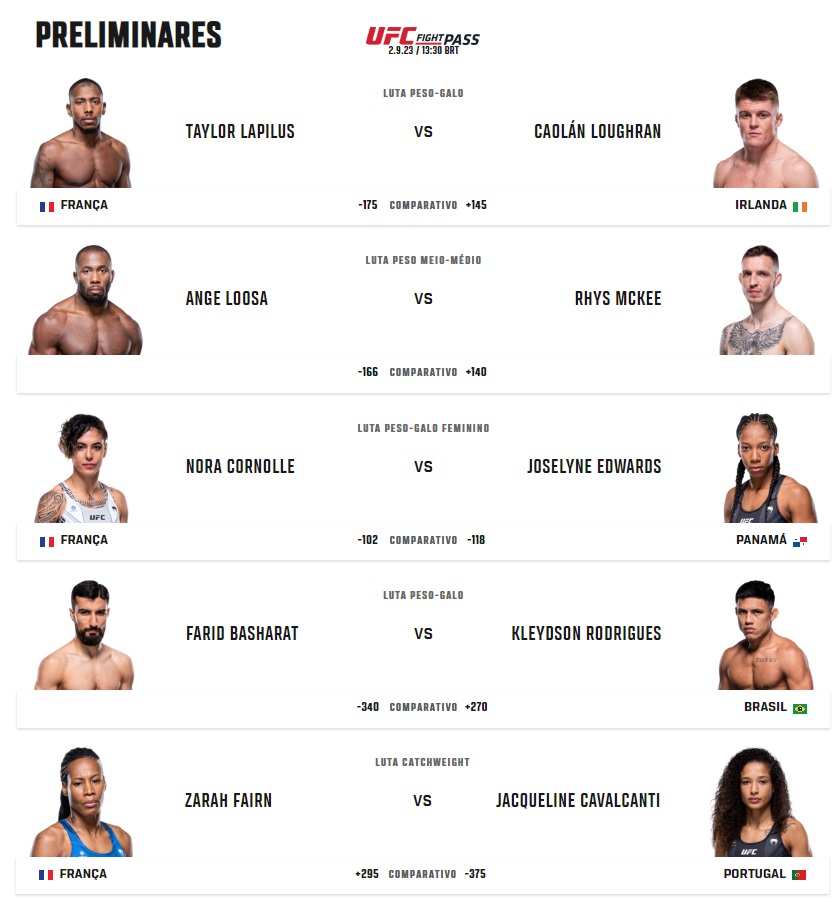 Luta 4: Benoit Saint-Denis x Thiago Moises – Peso Leve – 02/09/2023 – início aproximado no horário de Brasília às 18:40