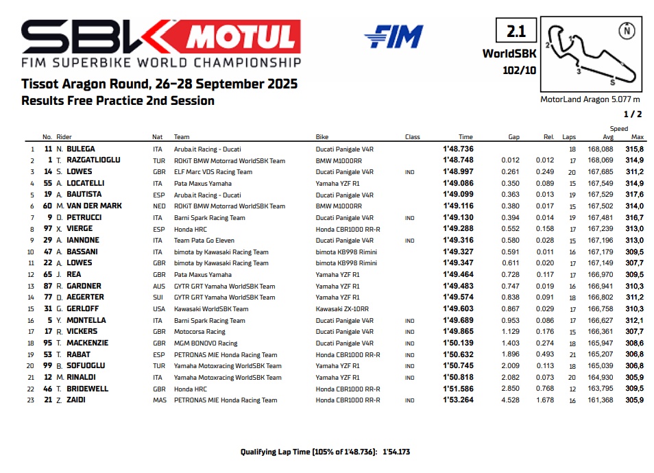 Bulega foi o mais rápido no FP2, vencendo Toprak, porém os tempos foram maiores que o FP1, deixando, portanto, Toprak como o vencedor do dia. No FP2, Bulega venceu Torpak por apenas 12 milésimos, nos deixando na expectativa da batalha do final de semana que se aproxima.